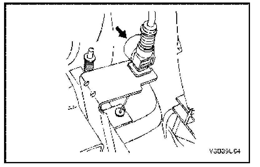 6. Press the retaining tabs of the cable adjuster and remove the adjuster from the mounting bracket.