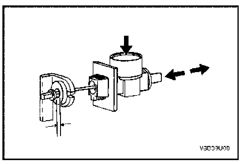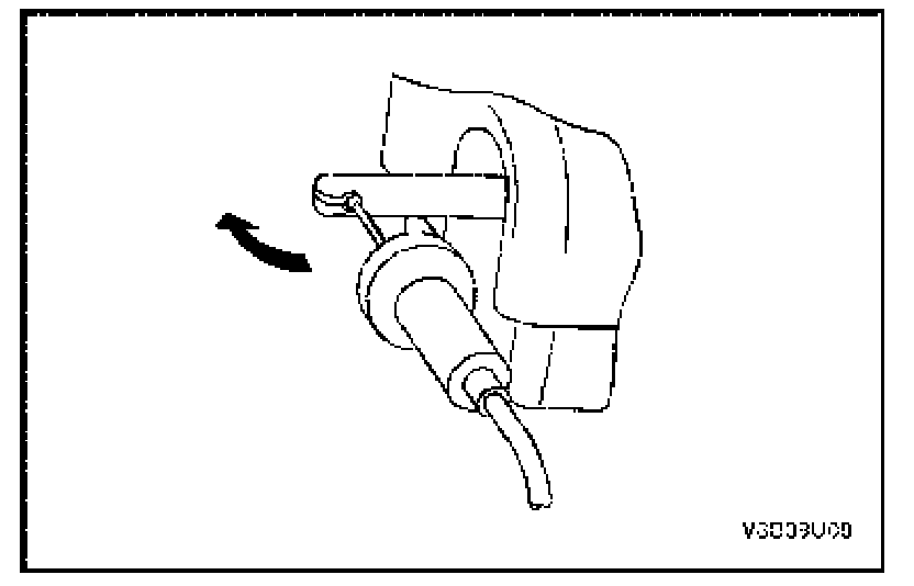 6. Press the cable release button and adjust the cable to achieve a gap of 0.5 mm (0.02 inch) between the bushing and the nipple of the ball.