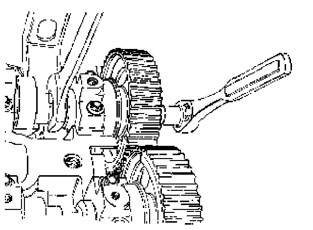 32. While holding the exhaust camshaft firmly in place, install the exhaust camshaft gear bolt.