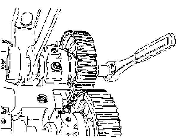 30. Install the camshaft gears by counterholding on the hex of the camshaft with an open ended wrench.