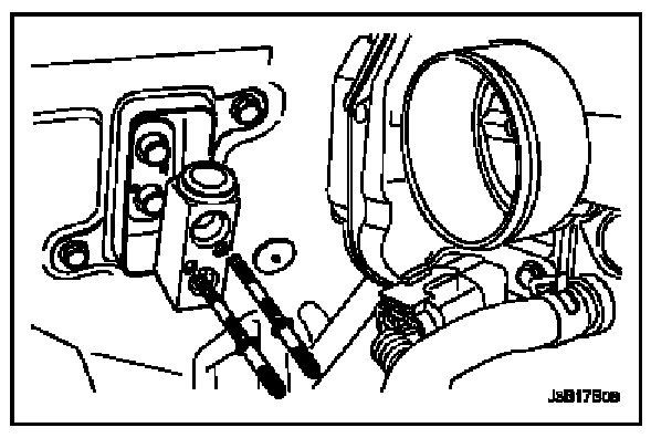 4. Remove the expansion valve connector block retaining stud bolts.