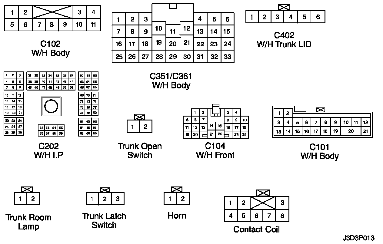 Connector Identification Symbol and Pin Number Position: