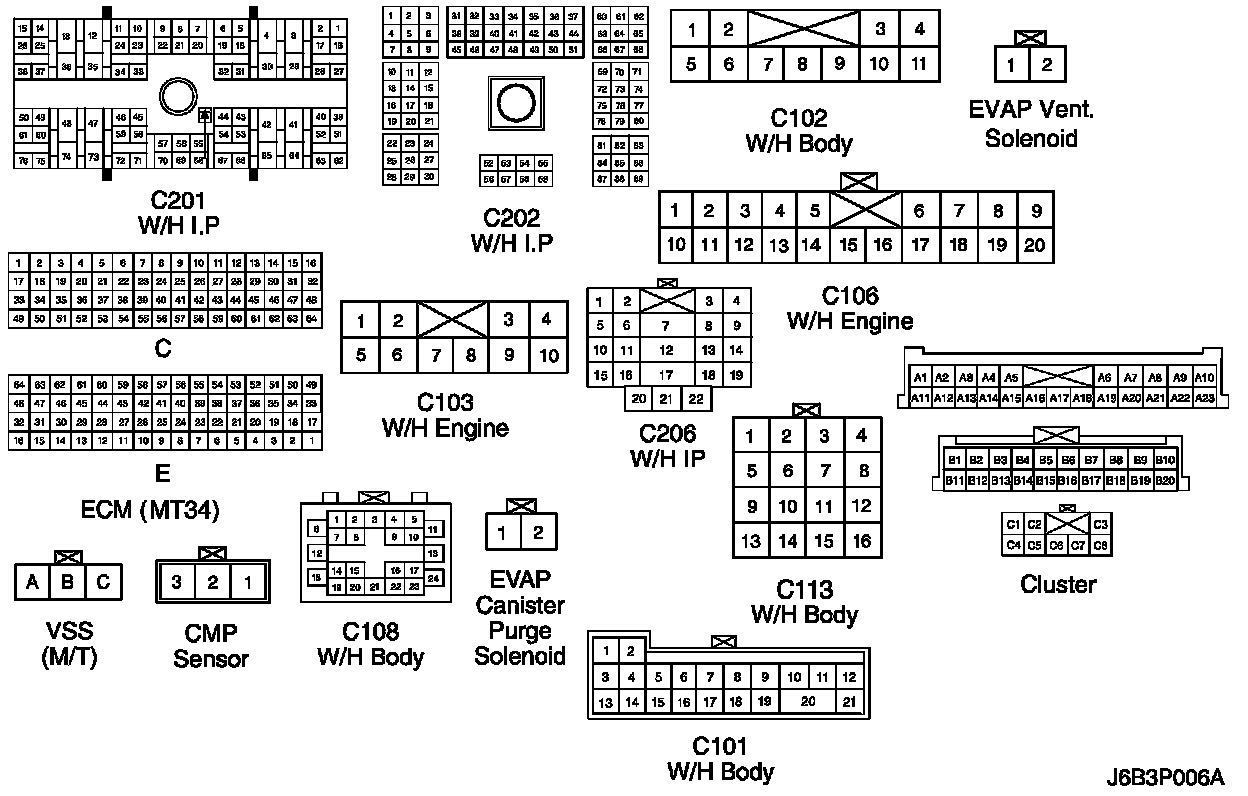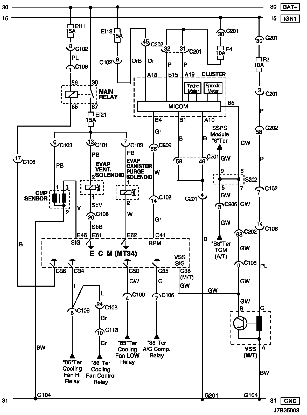 EVAP Canister Purge Solenoid, EVAP Vent. Solenoid, CMP Sensor, Cluster and VSS Circuit (For STATION WAGON Model)EVAP Canister Purge Solenoid, EVAP Vent. Solenoid, CMP Sensor, Cluster and VSS Circuit (For STATION WAGON Model):
