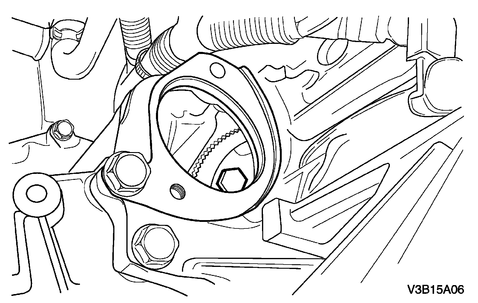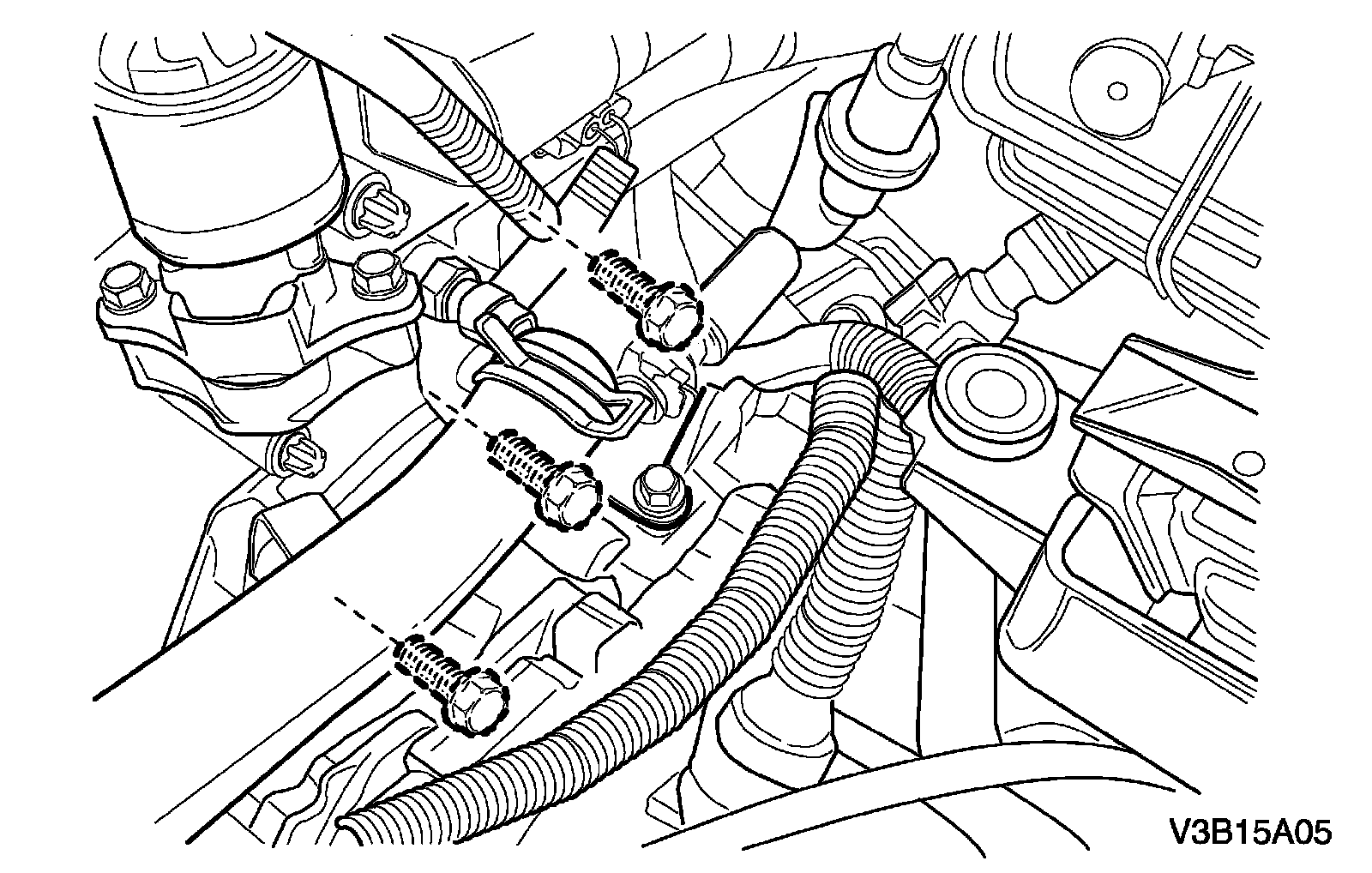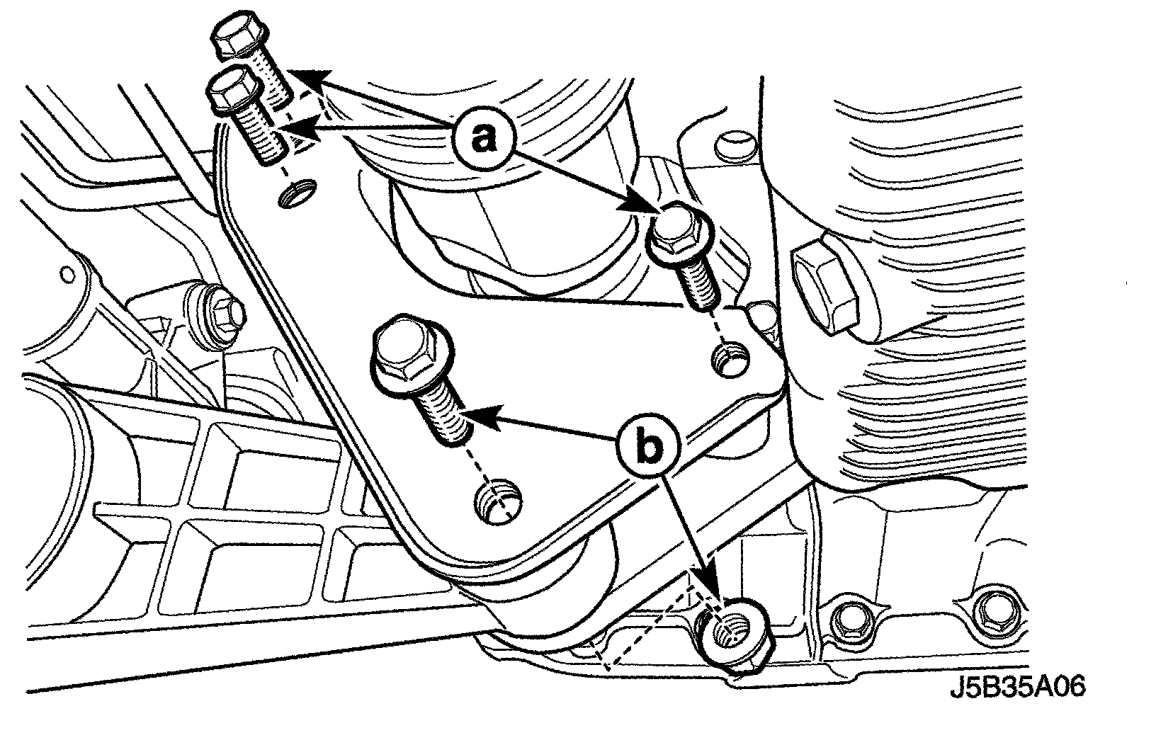 17. Remove the rear transaxle mounting bracket bolts (a) and damping block connection bolt and nut (b).