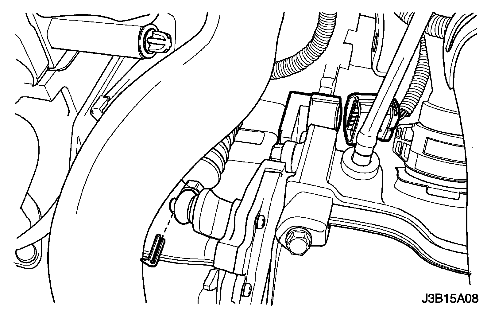7. Remove the clips from the shift control cable and disconnect the shift control cable from the transaxle.