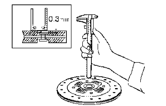 ^ Measure the rivet head depth from the clutch disc surface.