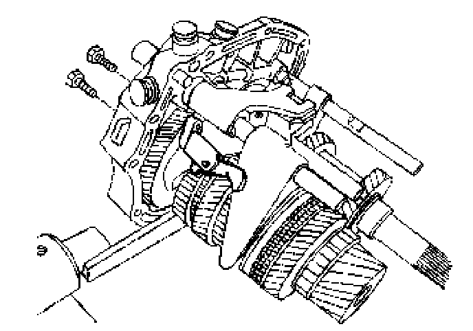 25. Install the bolts and the fifth-gear fork onto the bearing plate.