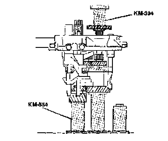 18. Install the input drive fifth gear using the installer KM-554 and the installer sleeve KM-334.