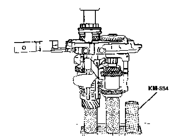 23. Install the fifth-drive gear synchronizer gear and the synchronizer sleeve using installer KM554.