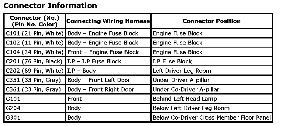 Connector Identification Symbol and Pin Number Position