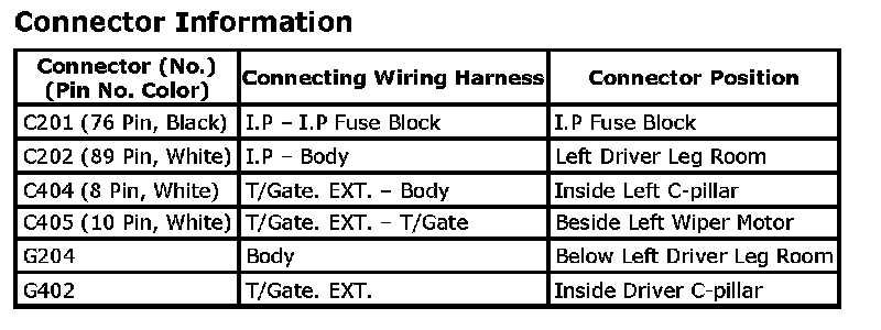 Connector Identification Symbol and Pin Number Position: