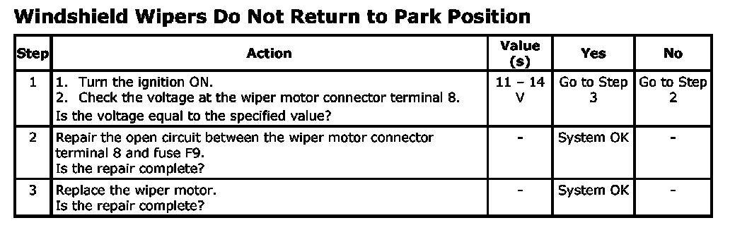 Windshield Wipers Do Not Return to Park Position