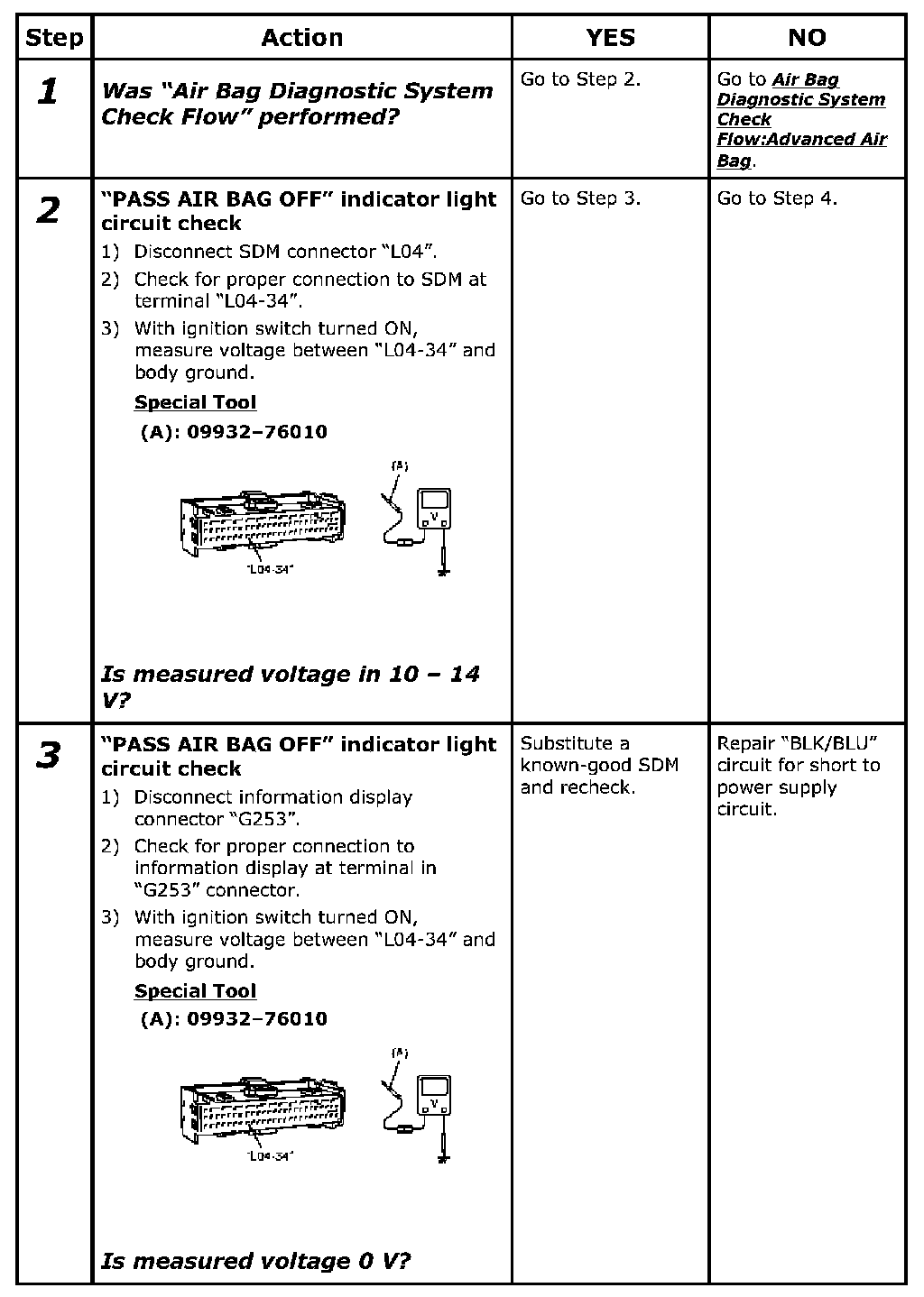 ^ Repeat Air Bag Diagnostic System Check:Advanced Air Bag to confirm that the trouble has been corrected.