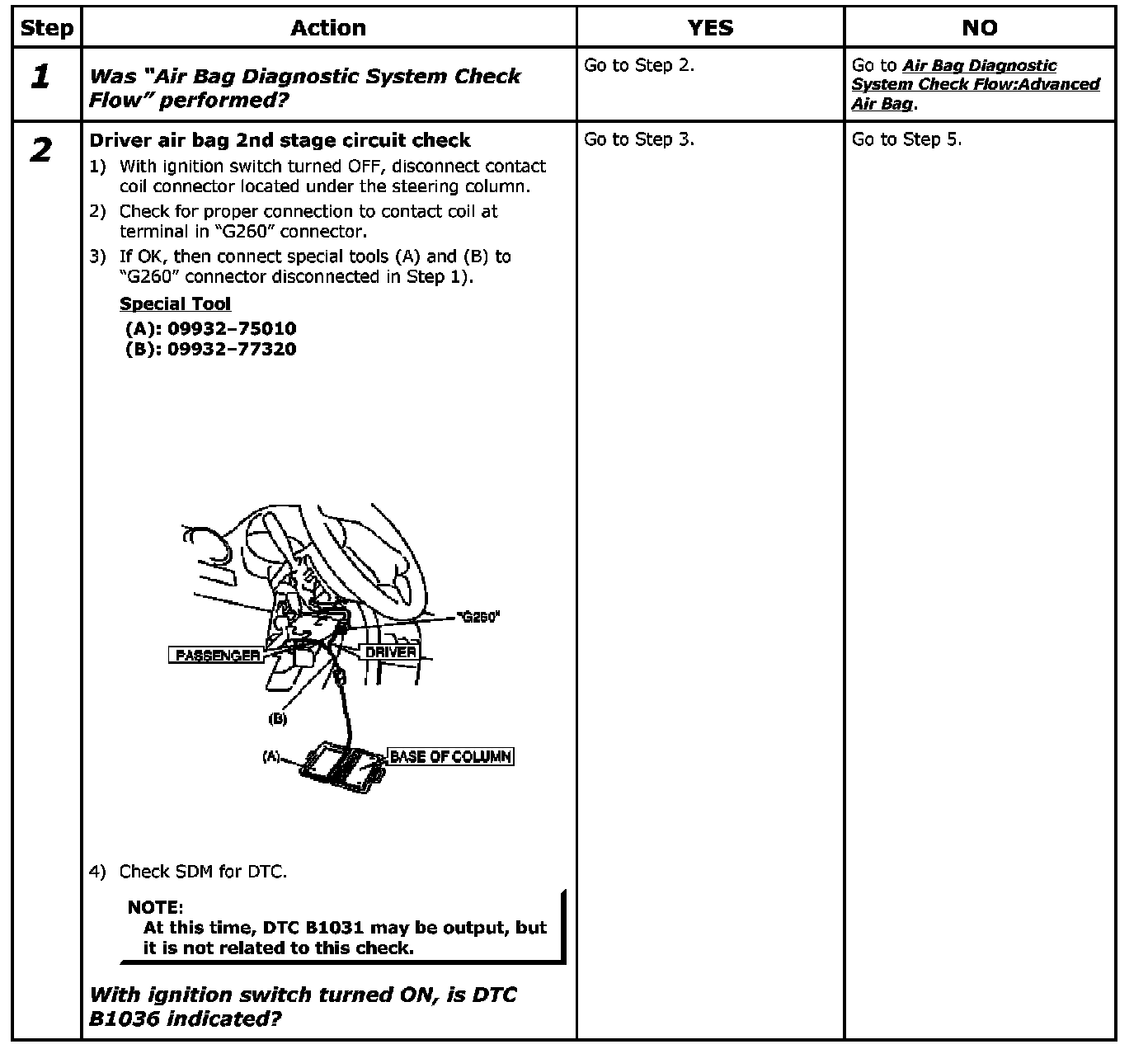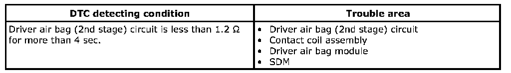 DTC B1036: Driver Air Bag (2nd stage) Circuit Low Resistance