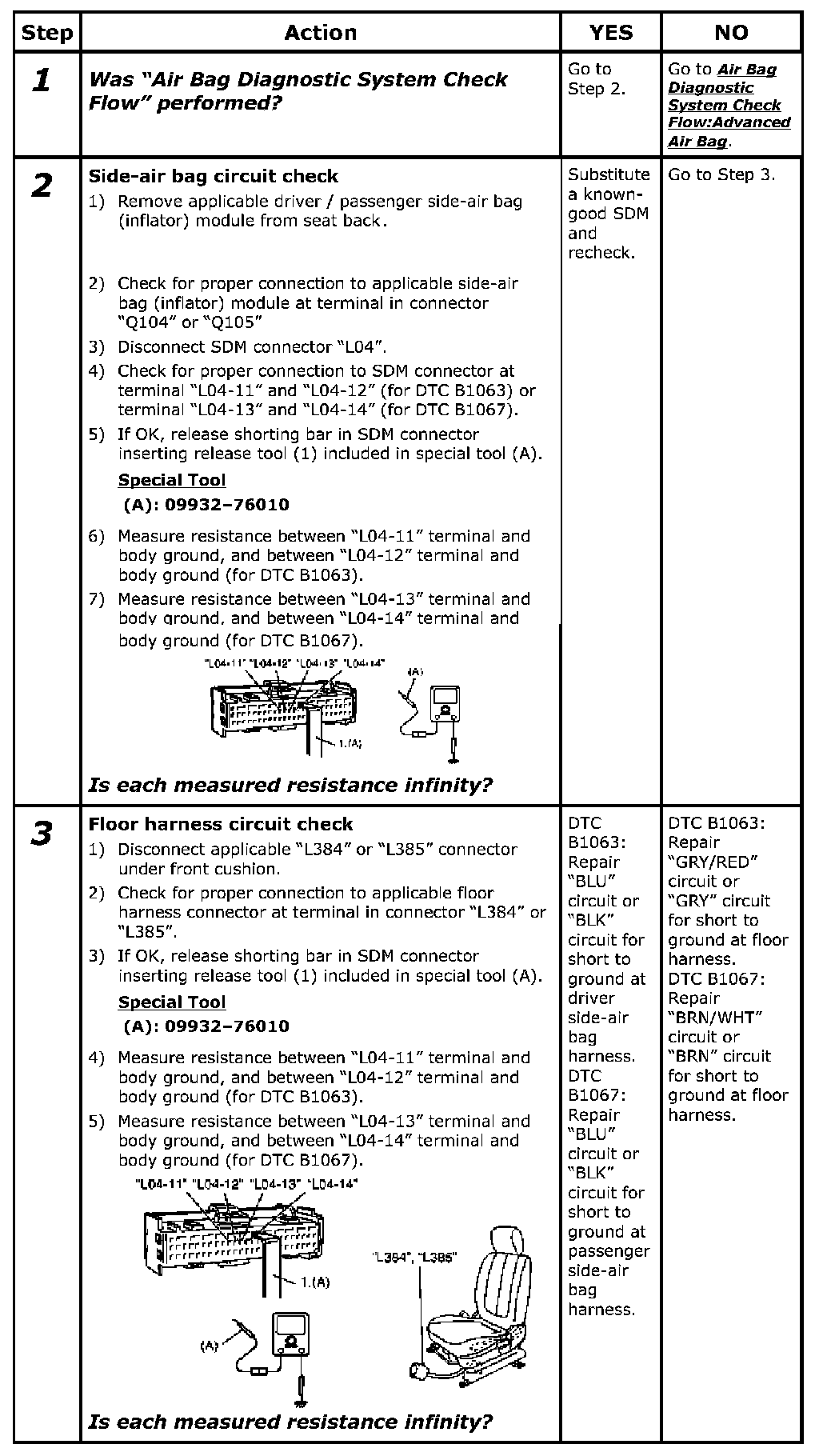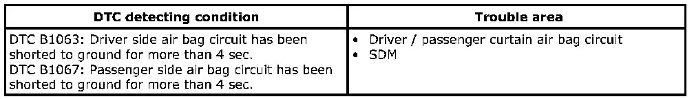 DTC B1063 / B1067: Side-Air Bag Circuit Shorted to Ground(DTC B1063: Driver Side-Air Bag Circuit Shorted to Ground)