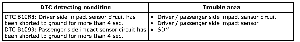 DTC B1083 / B1093: Side Impact-Sensor Circuit Shorted to Ground(DTC B1083: Driver Side Impact-Sensor Circuit Shorted to Ground)