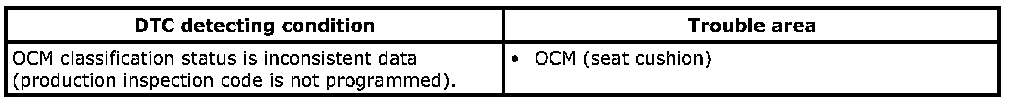 DTC B1316: OCM Classification Status ErrorDTC Detecting Condition and Trouble Area