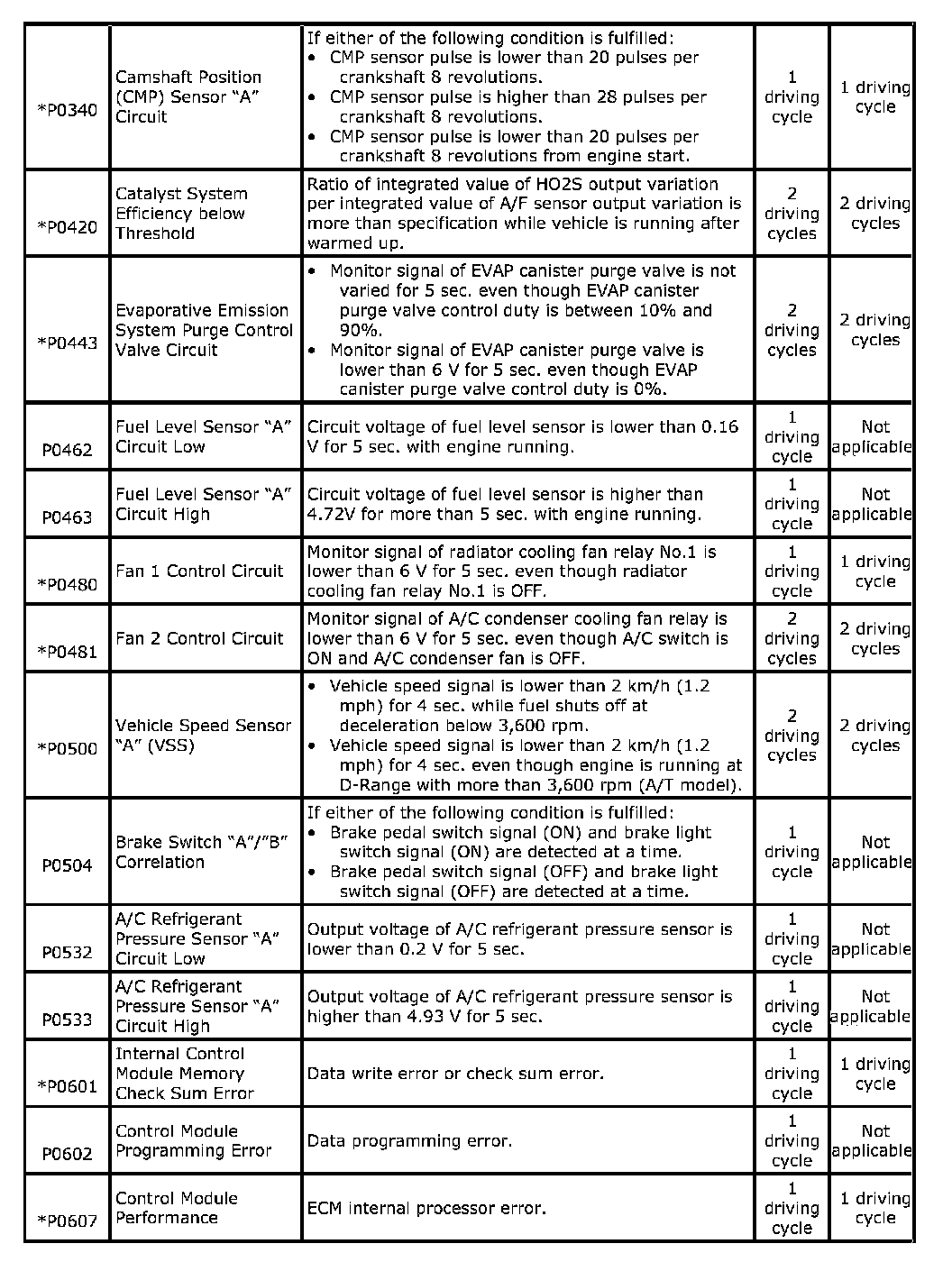 P0340-P0607: