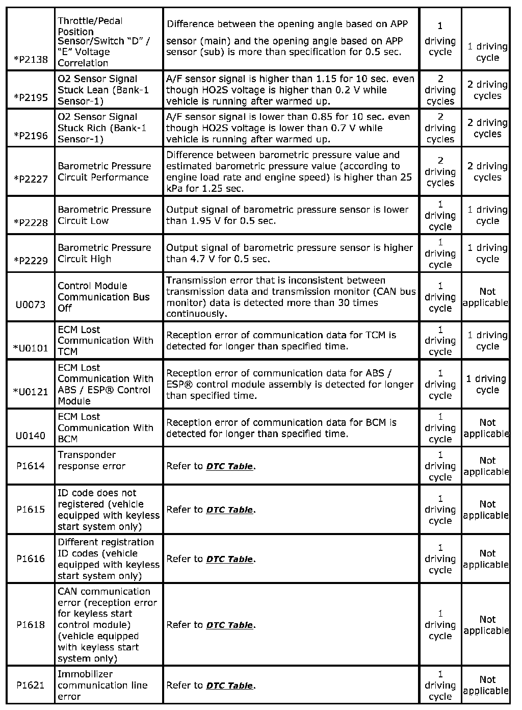 DTC Table