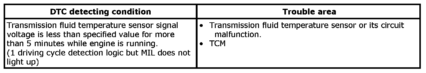 Refer to DTC P0711: Transmission Fluid Temperature Sensor "A" Circuit Range / Performance. P0711