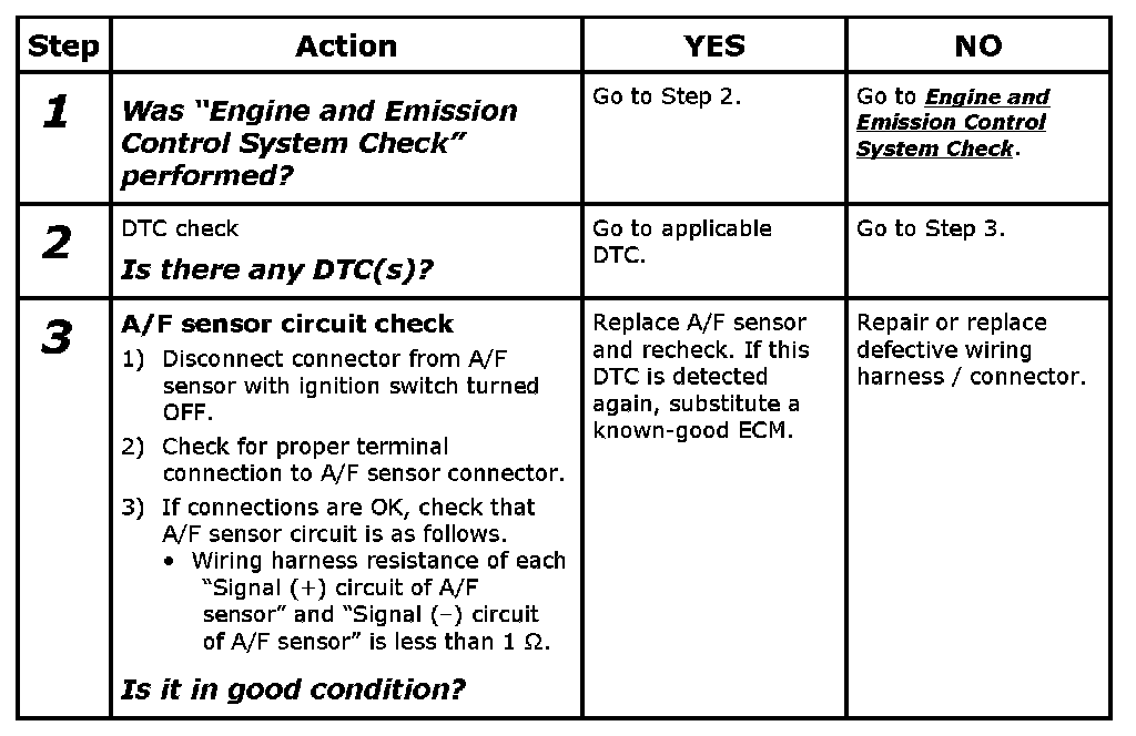 ^ The following DTCs are not detected: ECT sensor, IAT sensor, MAF sensor and barometric pressure sensor
