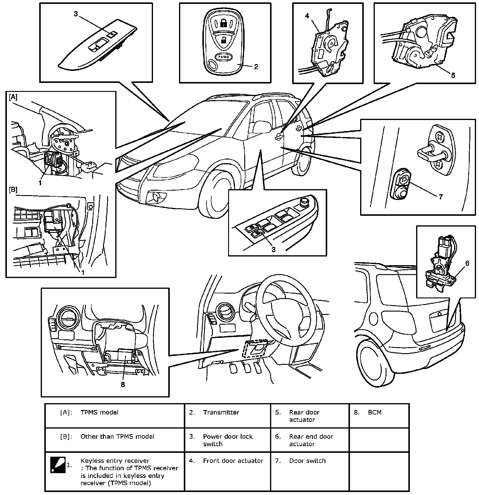 Power Door Lock And Keyless Entry System Component Location (If Equipped):