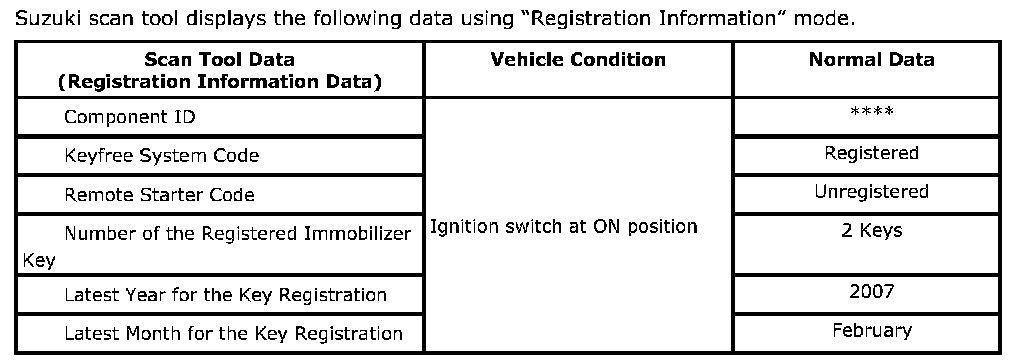 This parameter indicates the vehicle ID number of four digits used for the Suzuki scan tool.