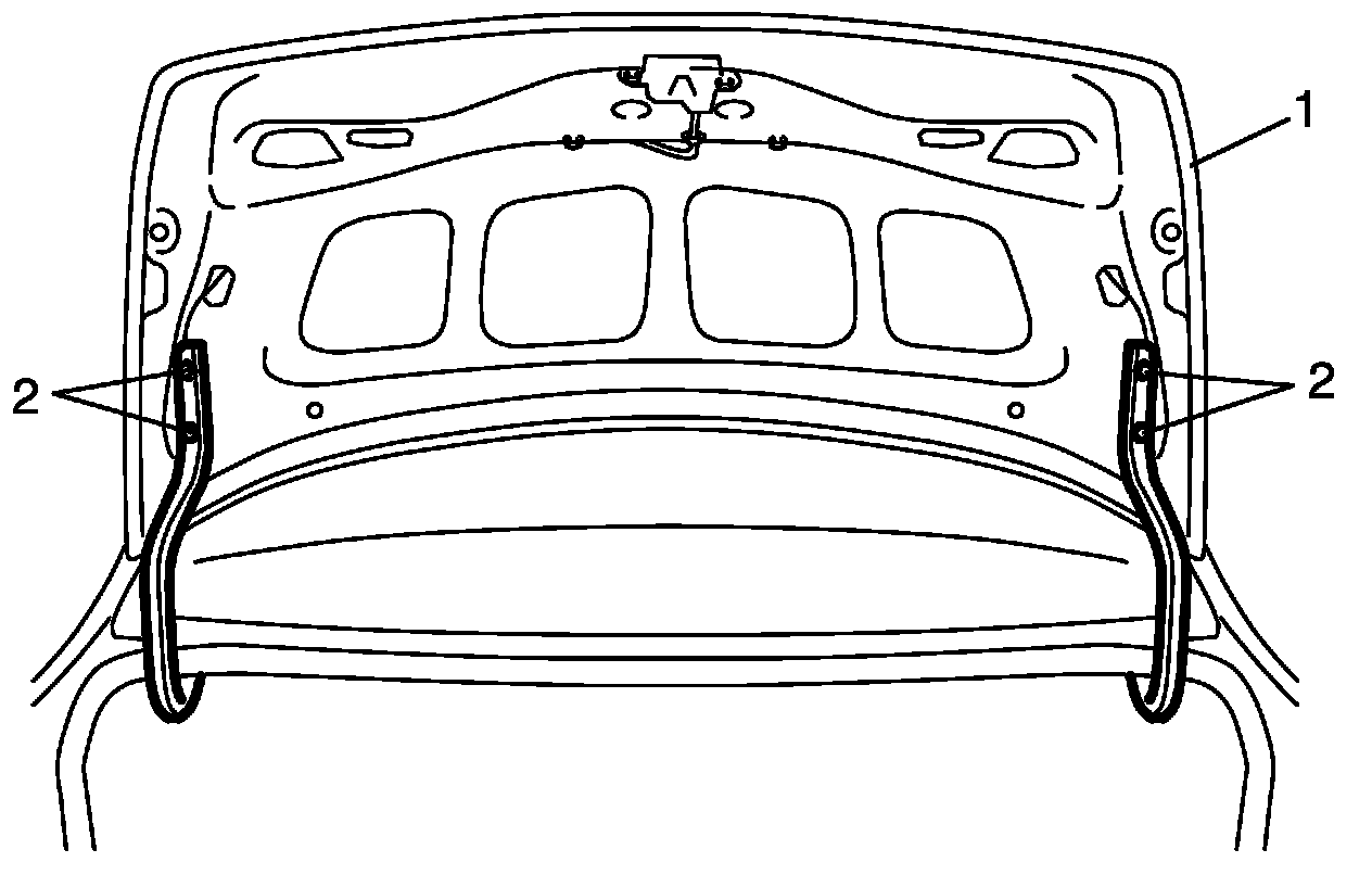 3. Remove trunk lid attaching bolts (2) and trunk lid.