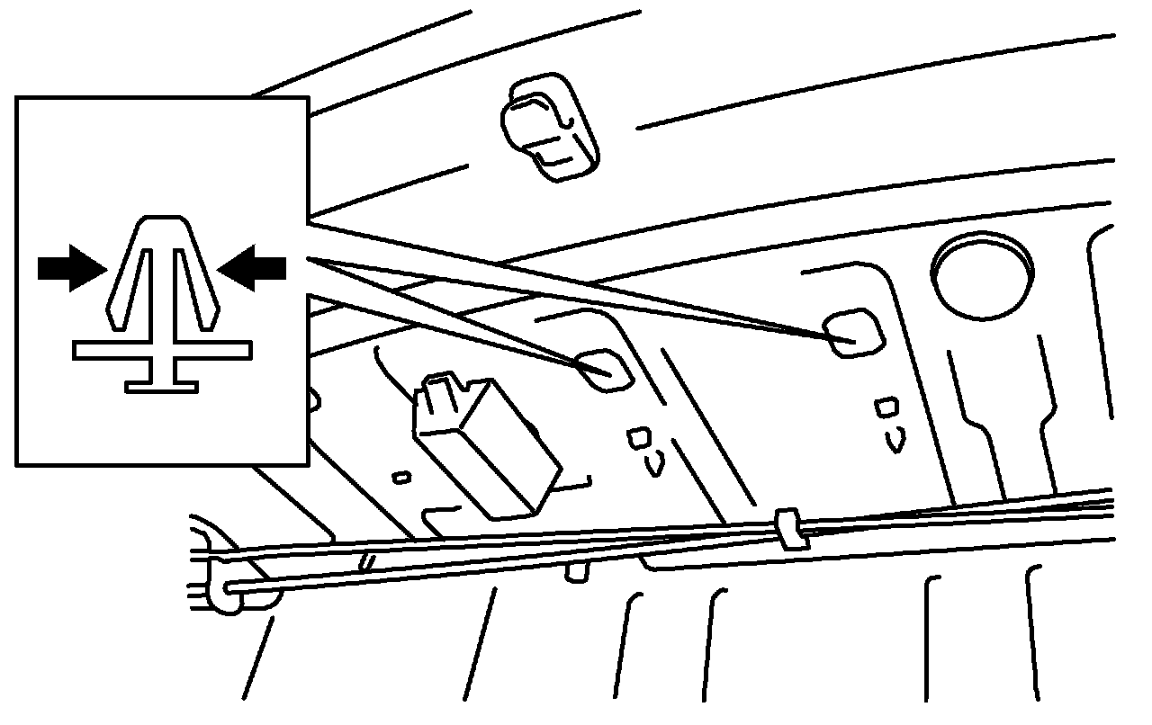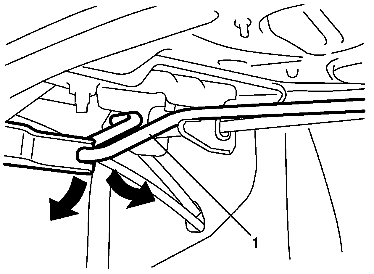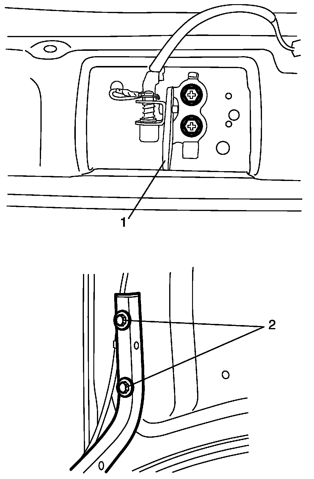 2. Remove trunk lid opener wire and trunk room harness from trunk lid panel (1).