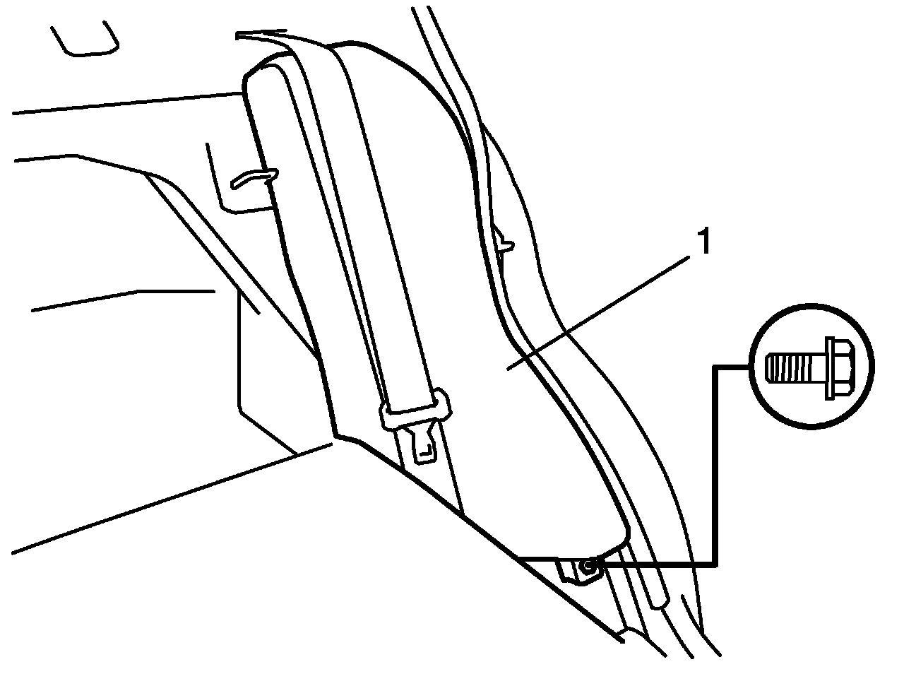 ^ Adjust trunk lid latch striker (1) so that striker shaft approximately aligns with the center of groove of trunk lid latch.