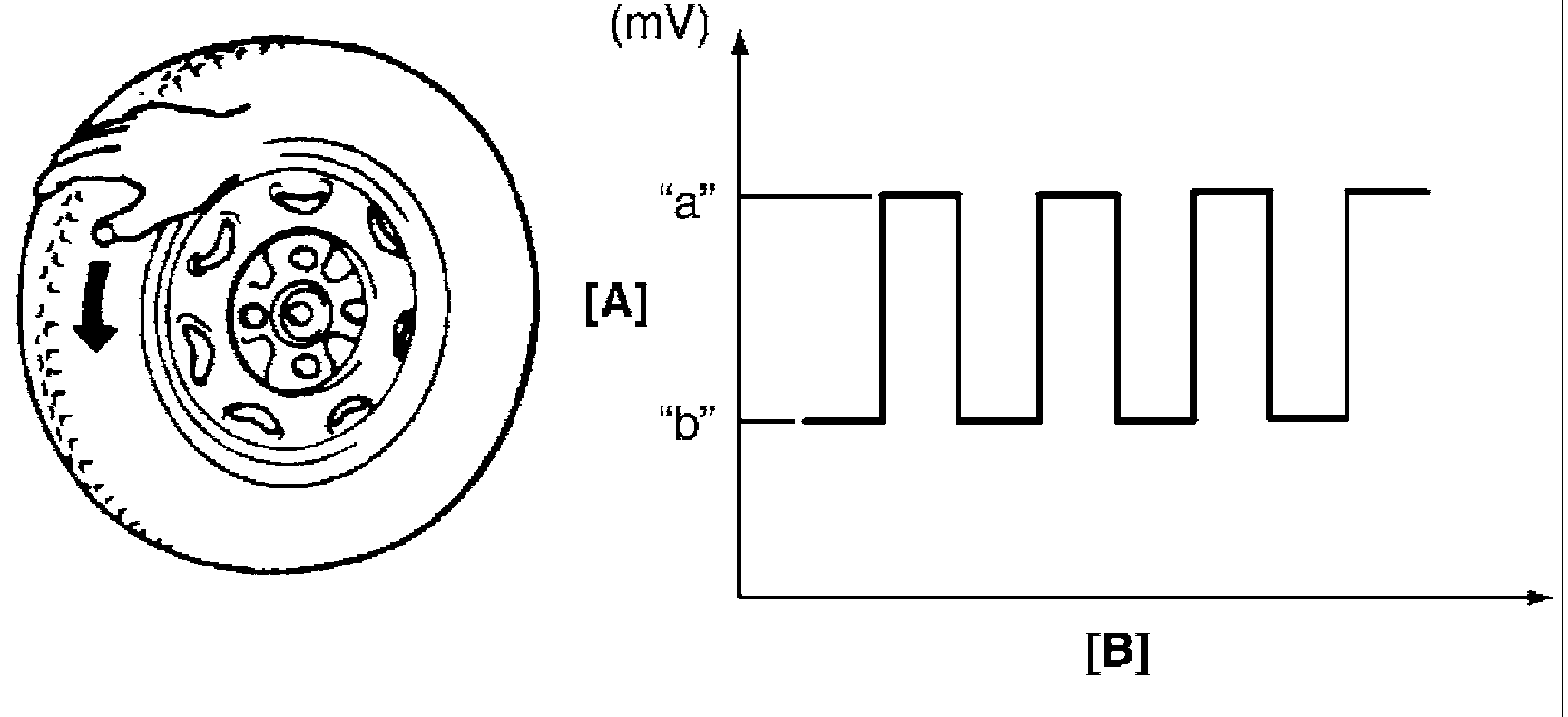 6. Measure voltage at resistance with wheel rotation and confirm voltage alternately changes between high and low voltages. If voltage does not change with wheel rotation, check sensor, mating encoder and their installation conditions.