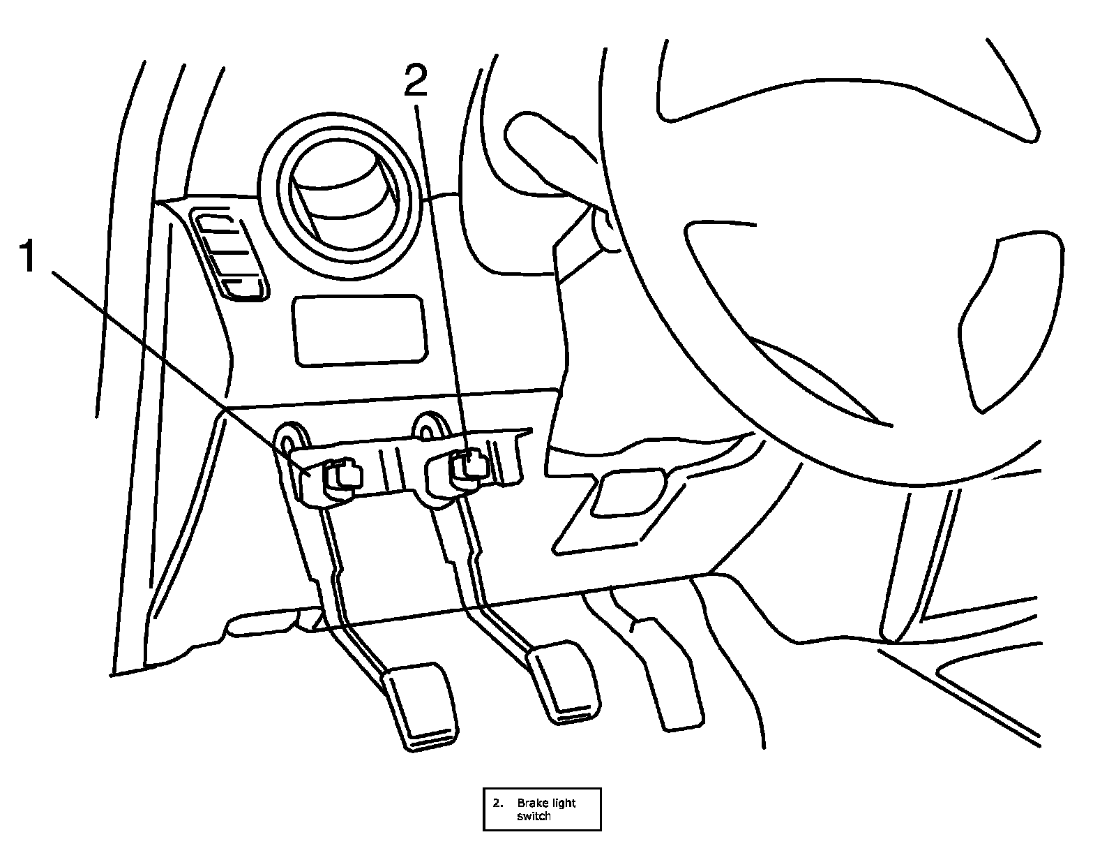1. Install CPP switch (for cruise control) (2) to pedal bracket.