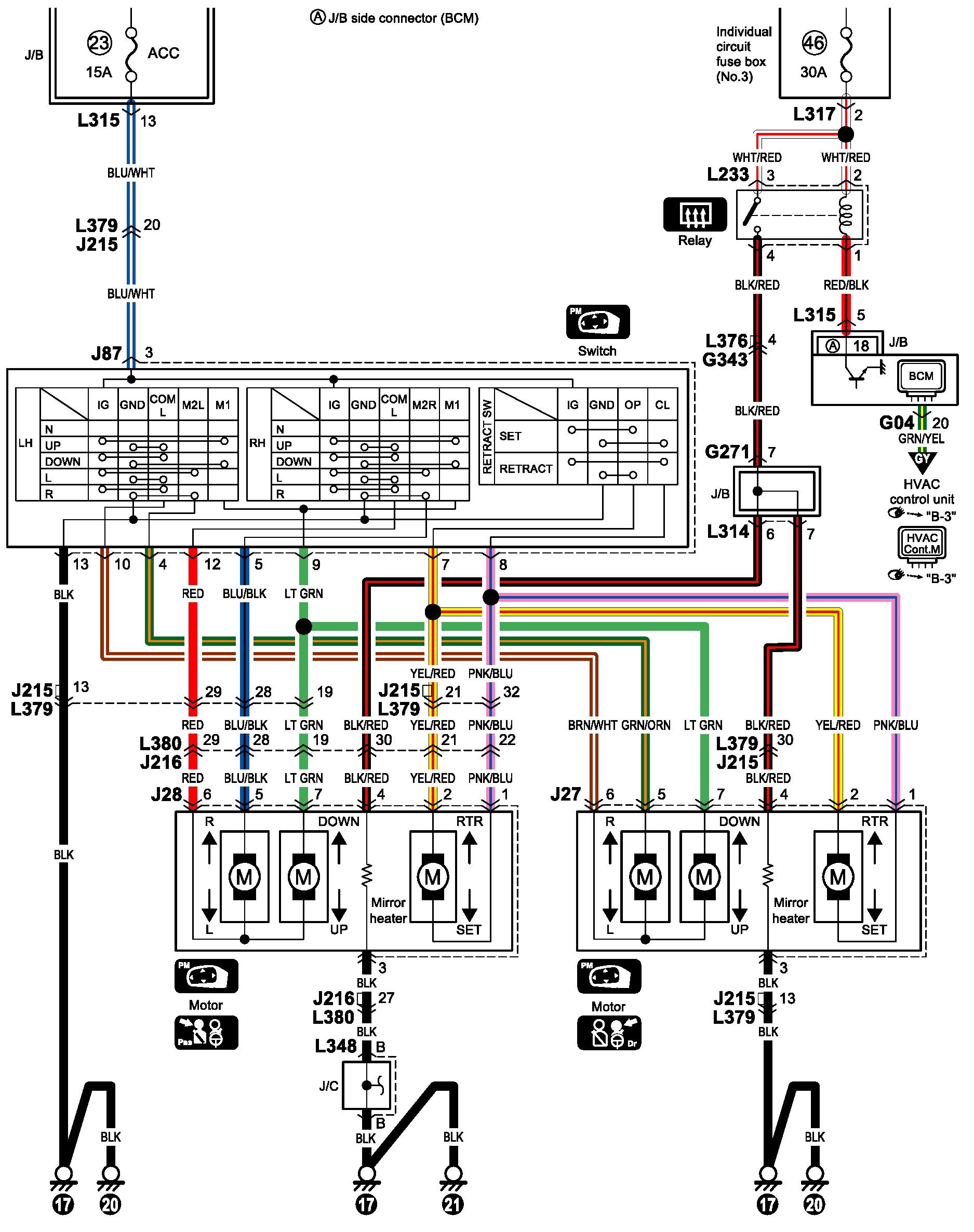 Power Mirror Circuit Diagram (Sedan)