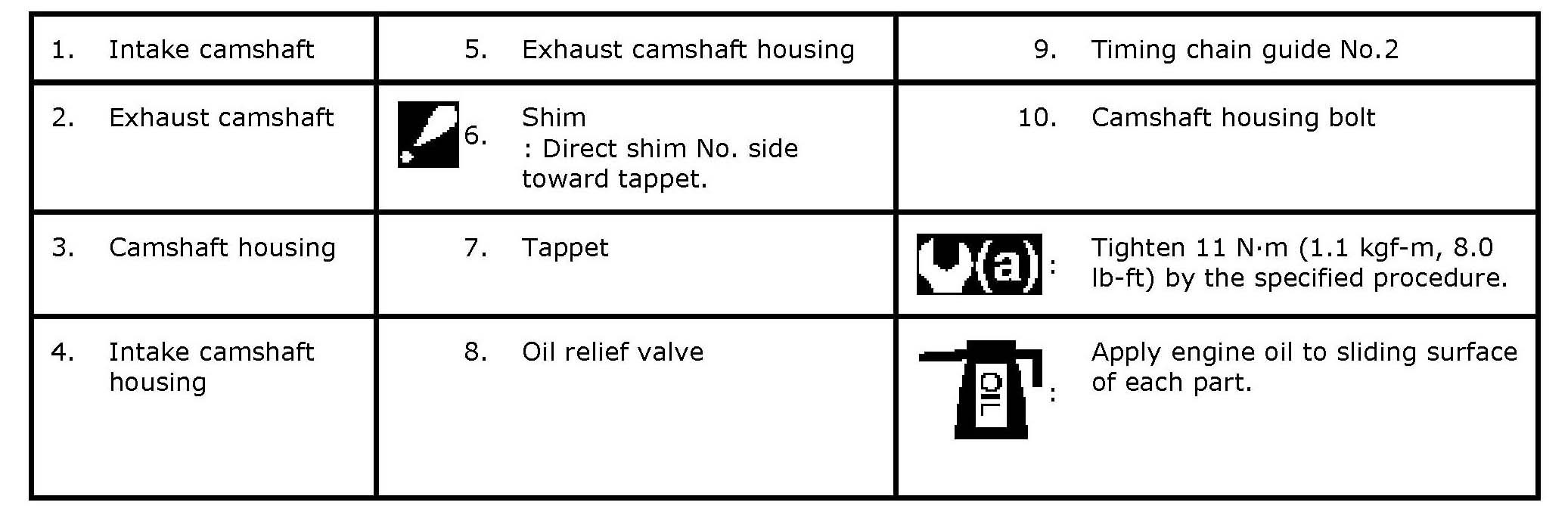 Camshafts, Tappet and Shim Components