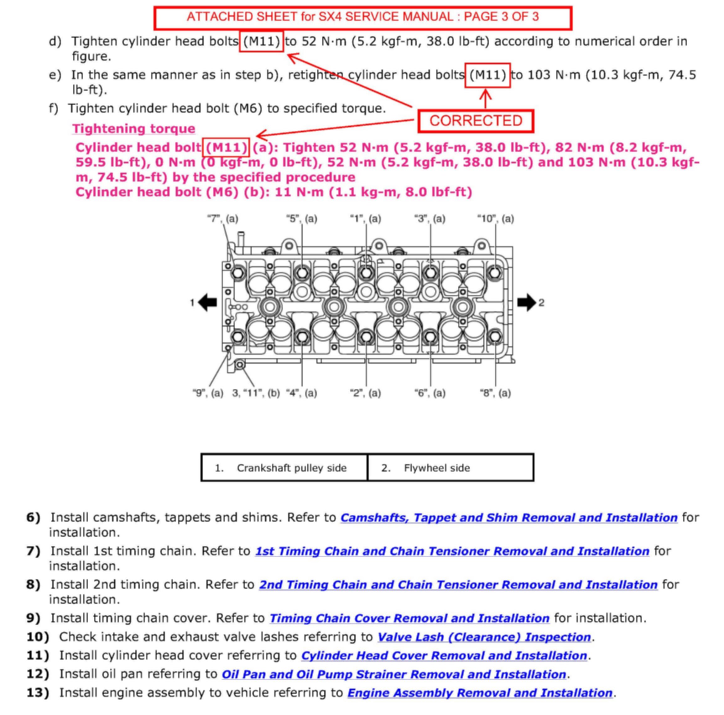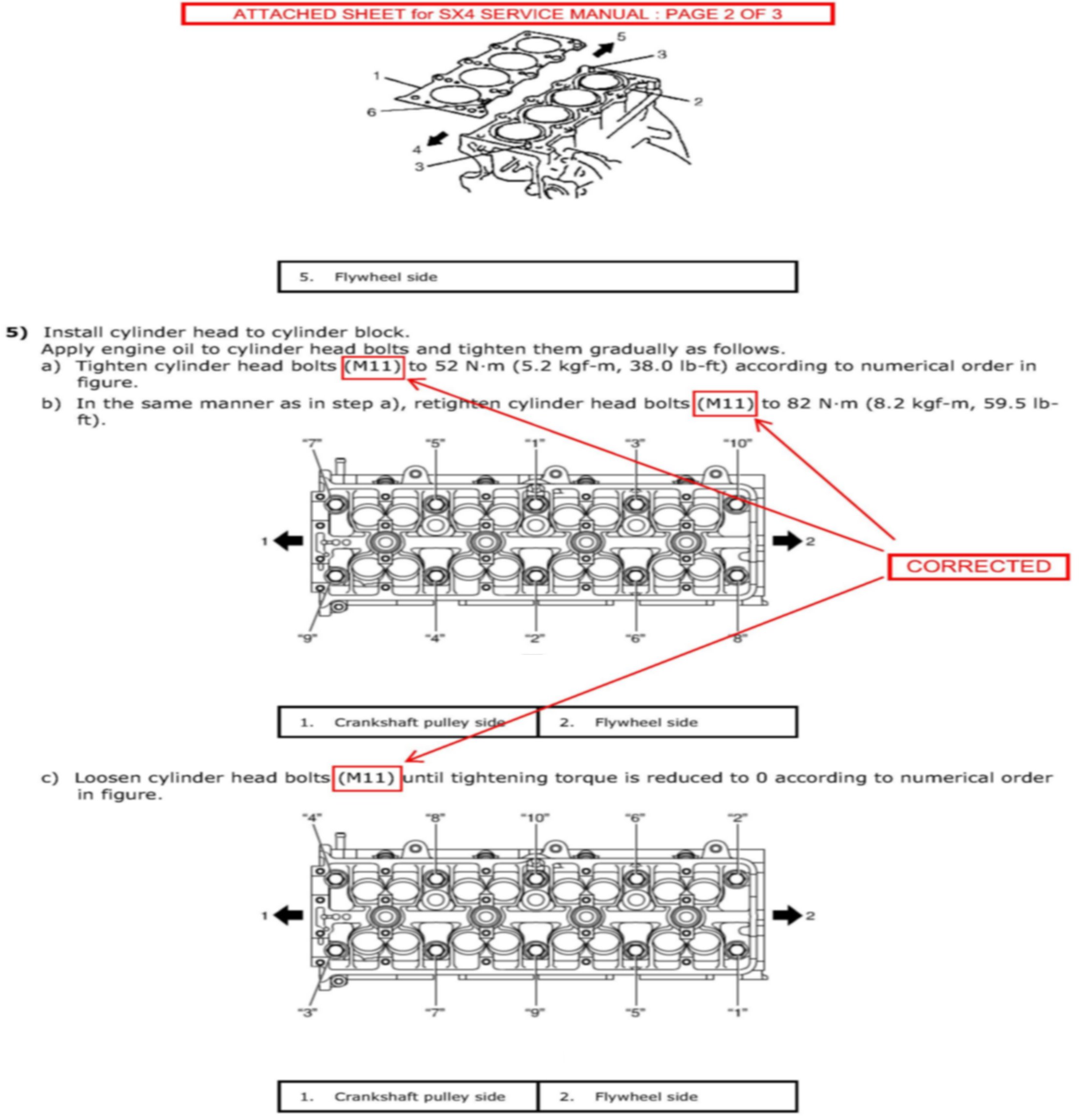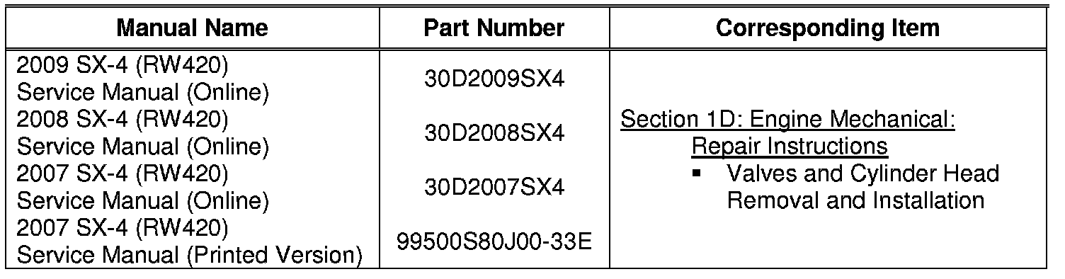 This bulletin is to inform you that there has been a correction made for the nominal diameter of the cylinder head bolt(s) mentioned in the Service Manual for the 2007, 2008, and 2009 SX-4 (RW420)