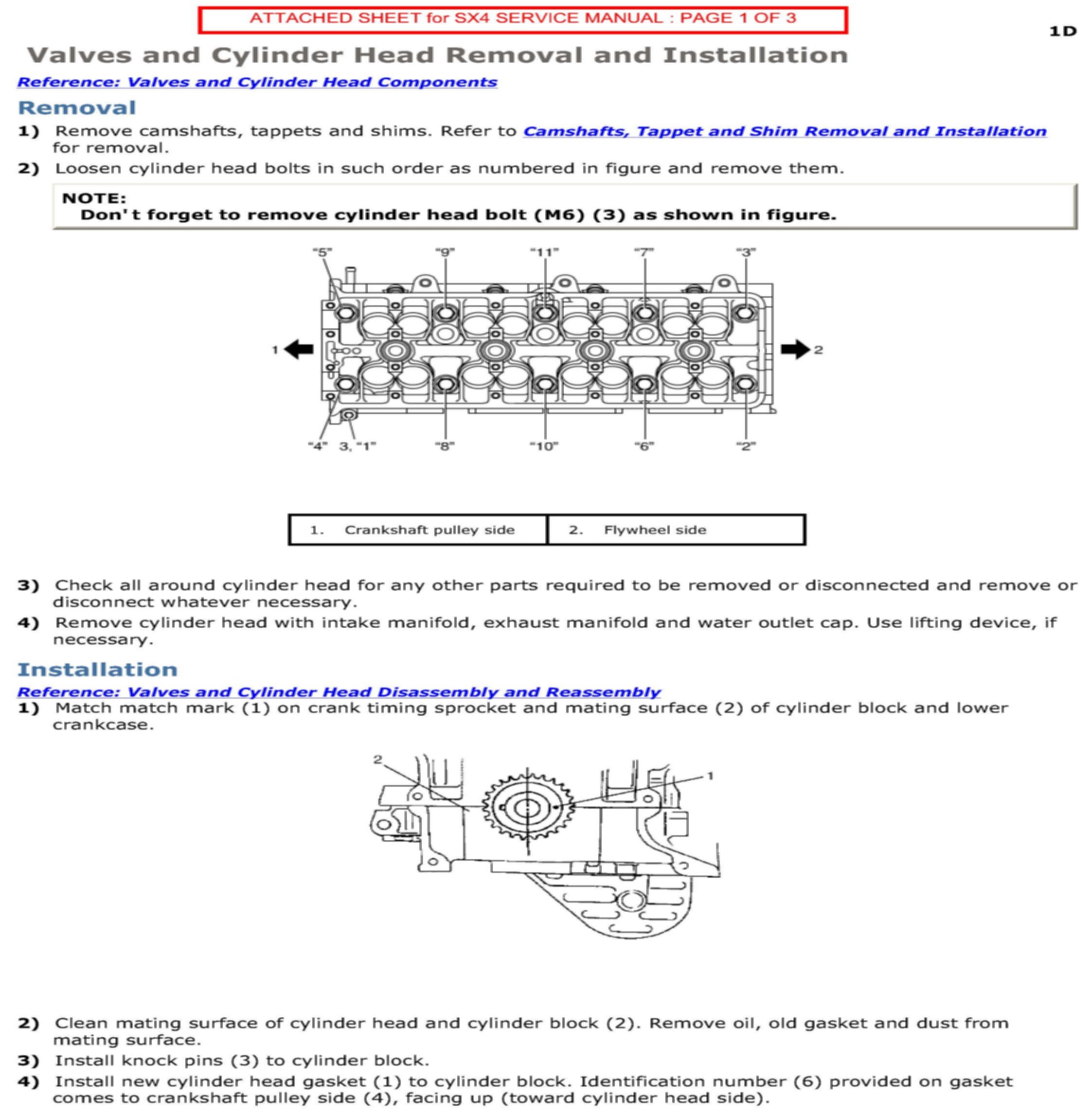 For users of the Online Service Manuals, please refer to the corrections illustrated in this bulletin that have been made to the service manual sections applying to the Valves and Cylinder Head Removal and Installation. The following table describes the Service Manual and the corresponding pages that were corrected.