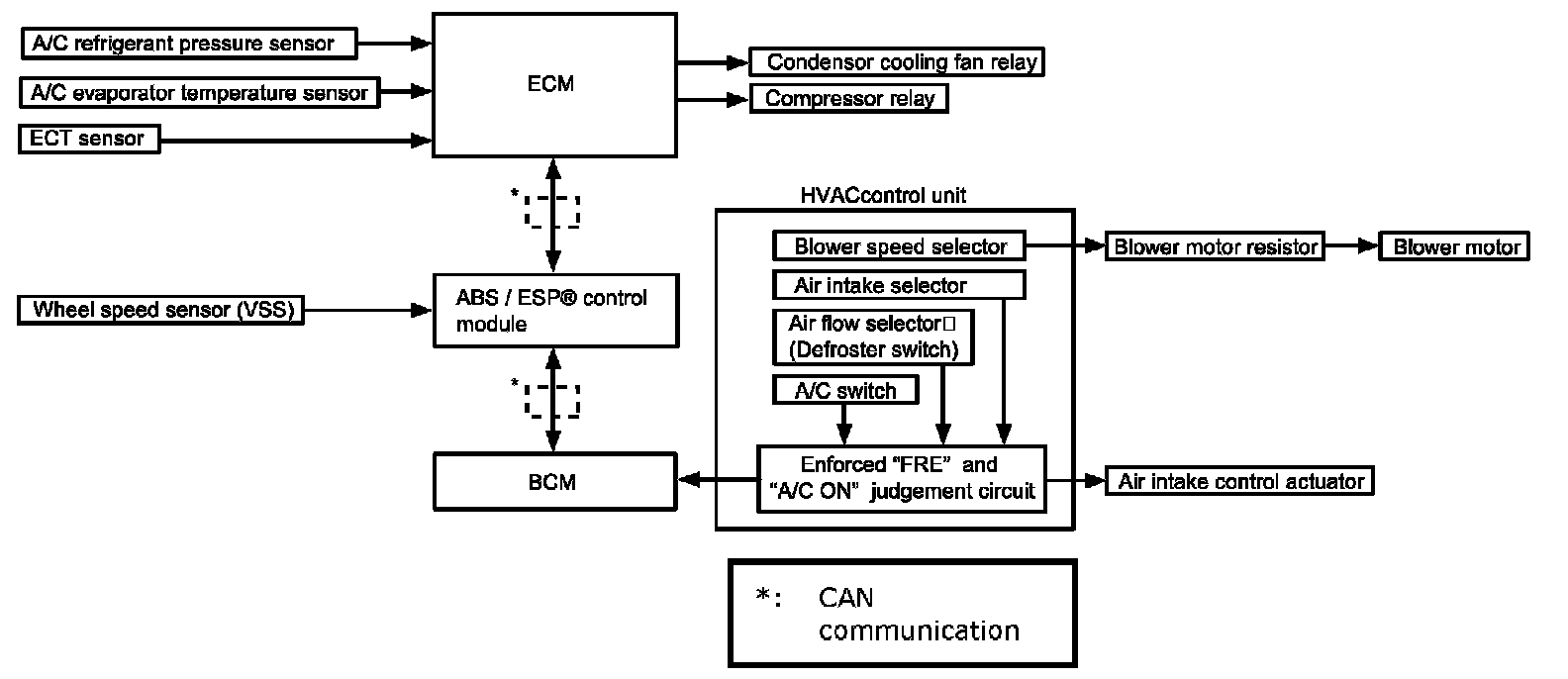 Manual A/C Electronic Control Input / Output Diagram