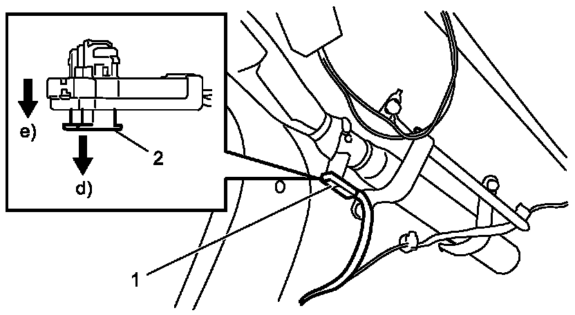 d. Unlock lock button (2) of black connector (1).