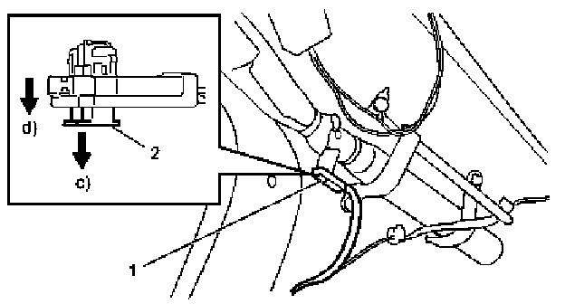 7. Disconnect yellow connector of side-air bag (inflator) module under front seat cushion (1).