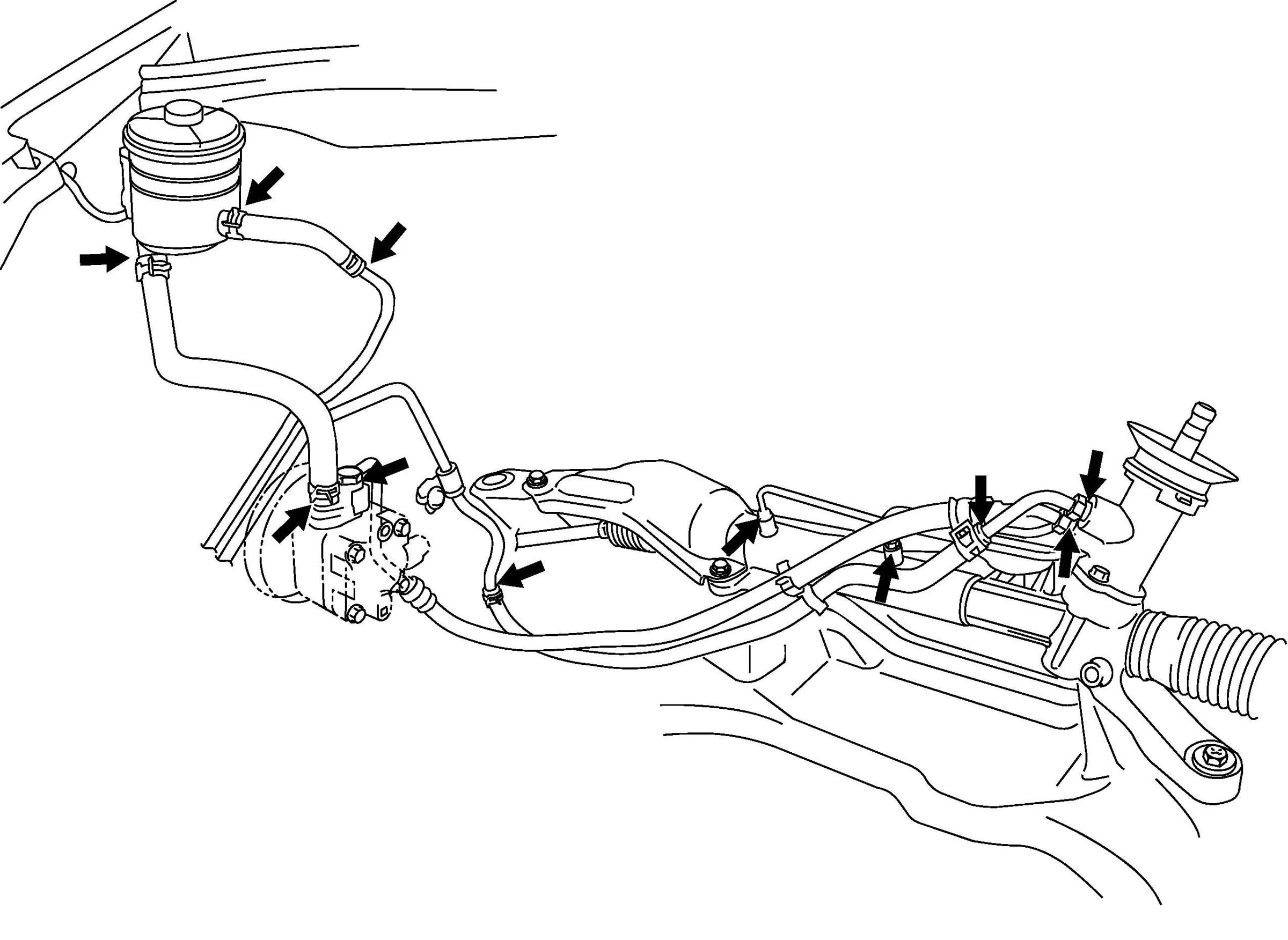 P/S Fluid Leakage CheckStart engine and turn steering wheel fully to the right and left so that maximum hydraulic pressure is provided. Then visually check gear case, P/S pump and P/S fluid reservoir themselves and each joint of their connecting pipes for leakage.