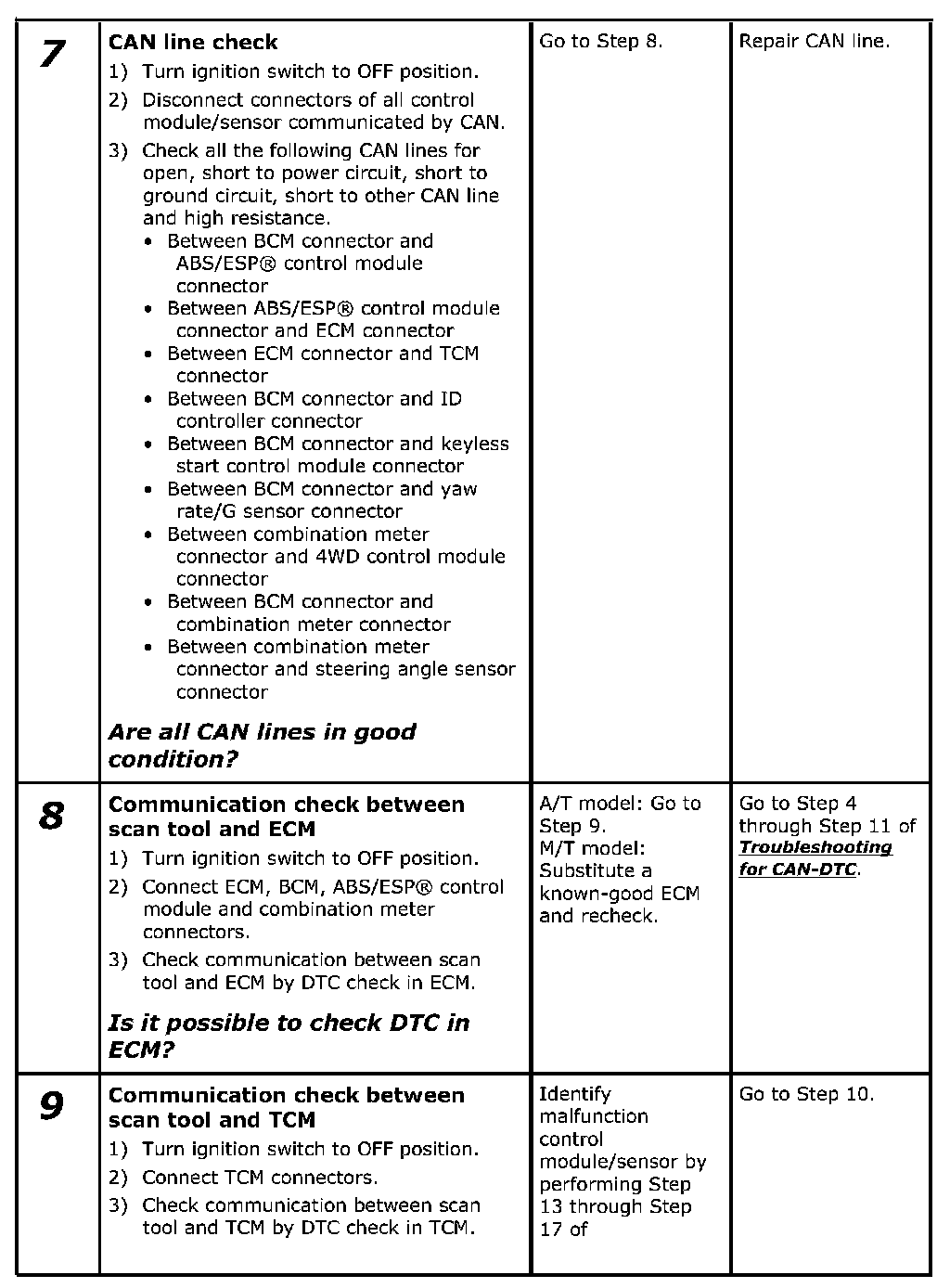 Troubleshooting for Communication Error with Scan Tool Using CANPerform this troubleshooting when it is not possible to communicate between scan tool and ECM/TCM.