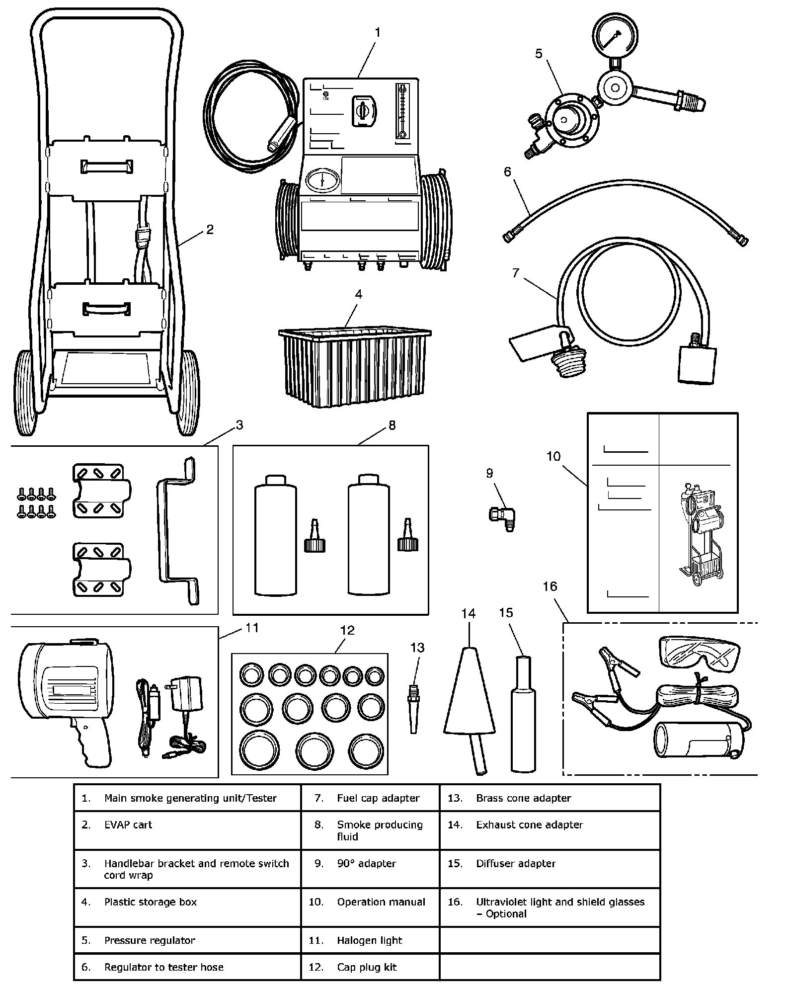 NOTE: We recommend that you assemble the tester to the EVAP cart by the assistance of another person.