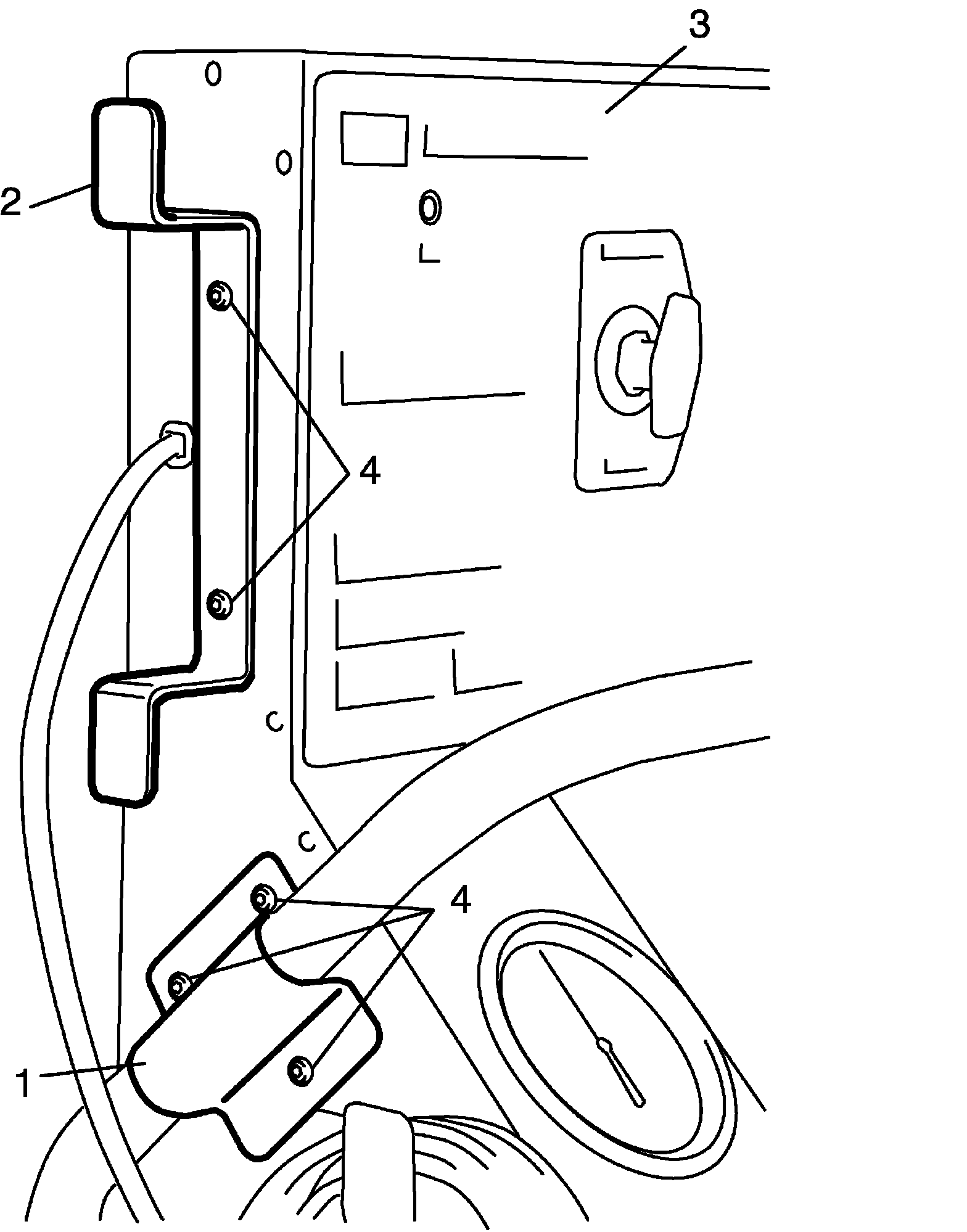 4. Attach the nitrogen tank (3) securely to the EVAP cart (1) by using the tank fixing bands (2) that should be attached to the EVAP cart (1).