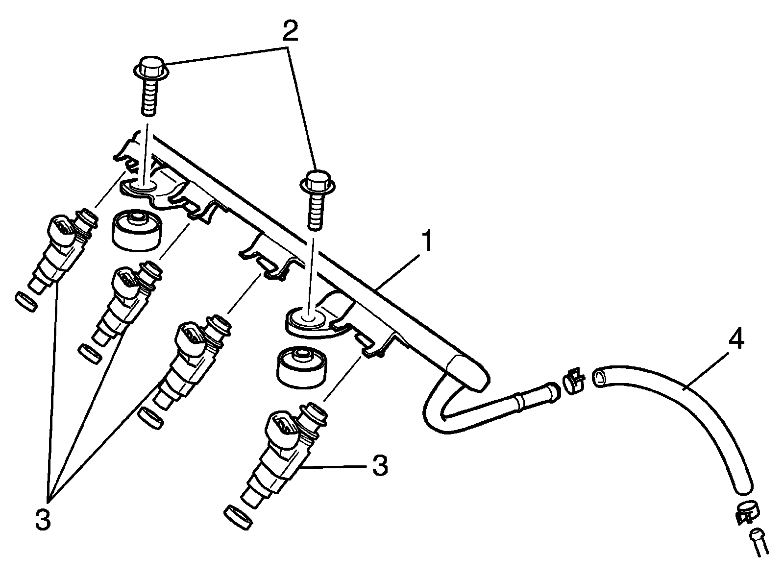 5. Disconnect fuel feed hose (4) from fuel delivery pipe (1).