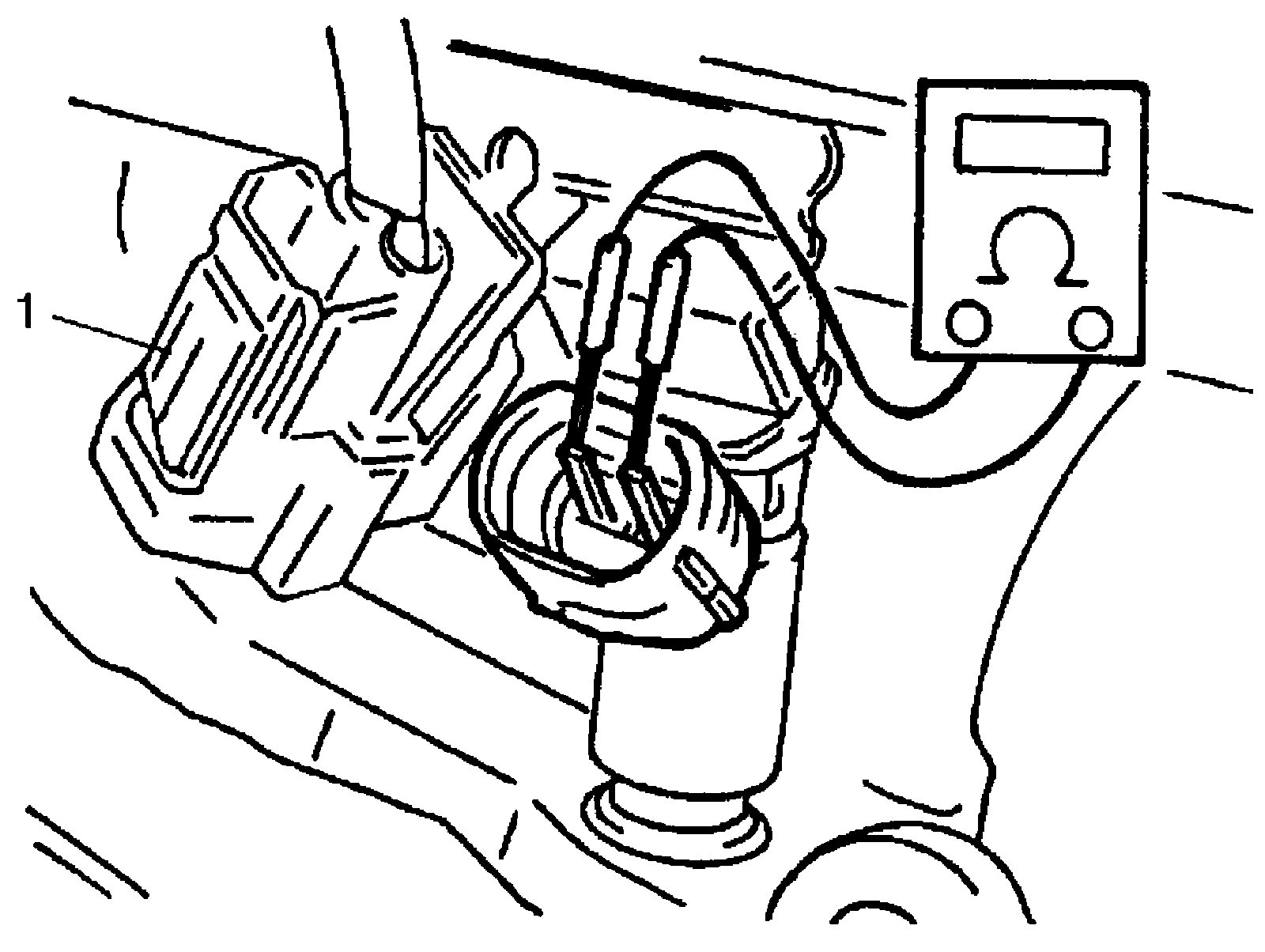 2. Disconnect connector (1) from injector, connect ohmmeter between terminals of injector and check resistance.