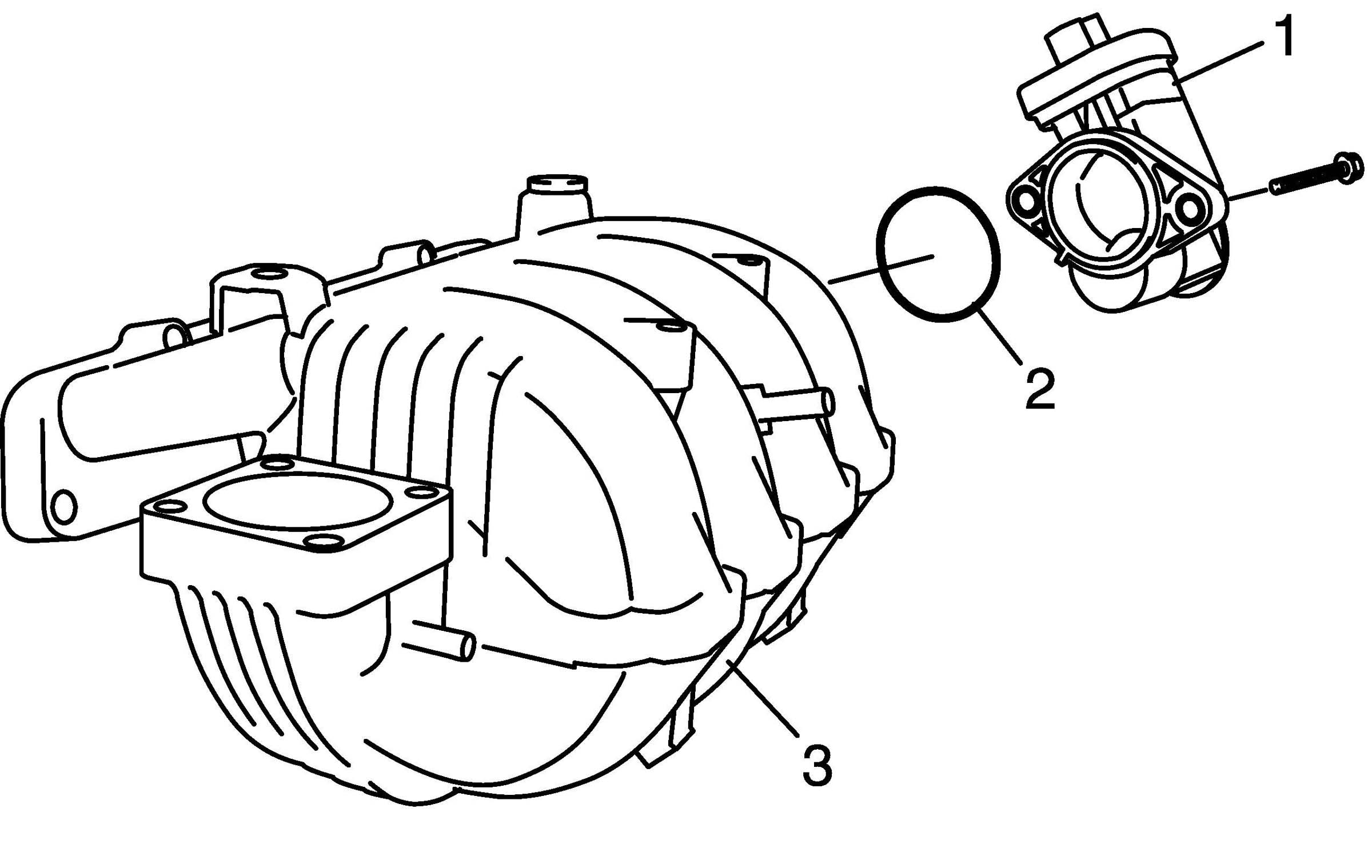 3. Remove IMT valve actuator (1) and O-ring (2) from intake manifold (3).