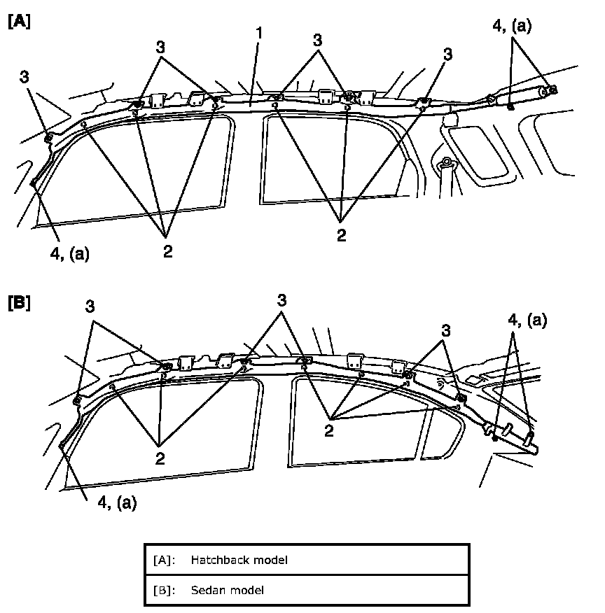 Side curtain-air bag (inflator) module bolts (a): 11 Nm (1.1 kg.m, 8.0 lbf.ft)
