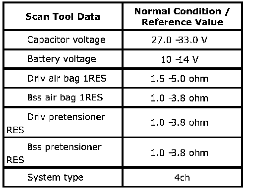 Drive air bag 1 RES (Driver air bag 1st stage resistance) (ohm)