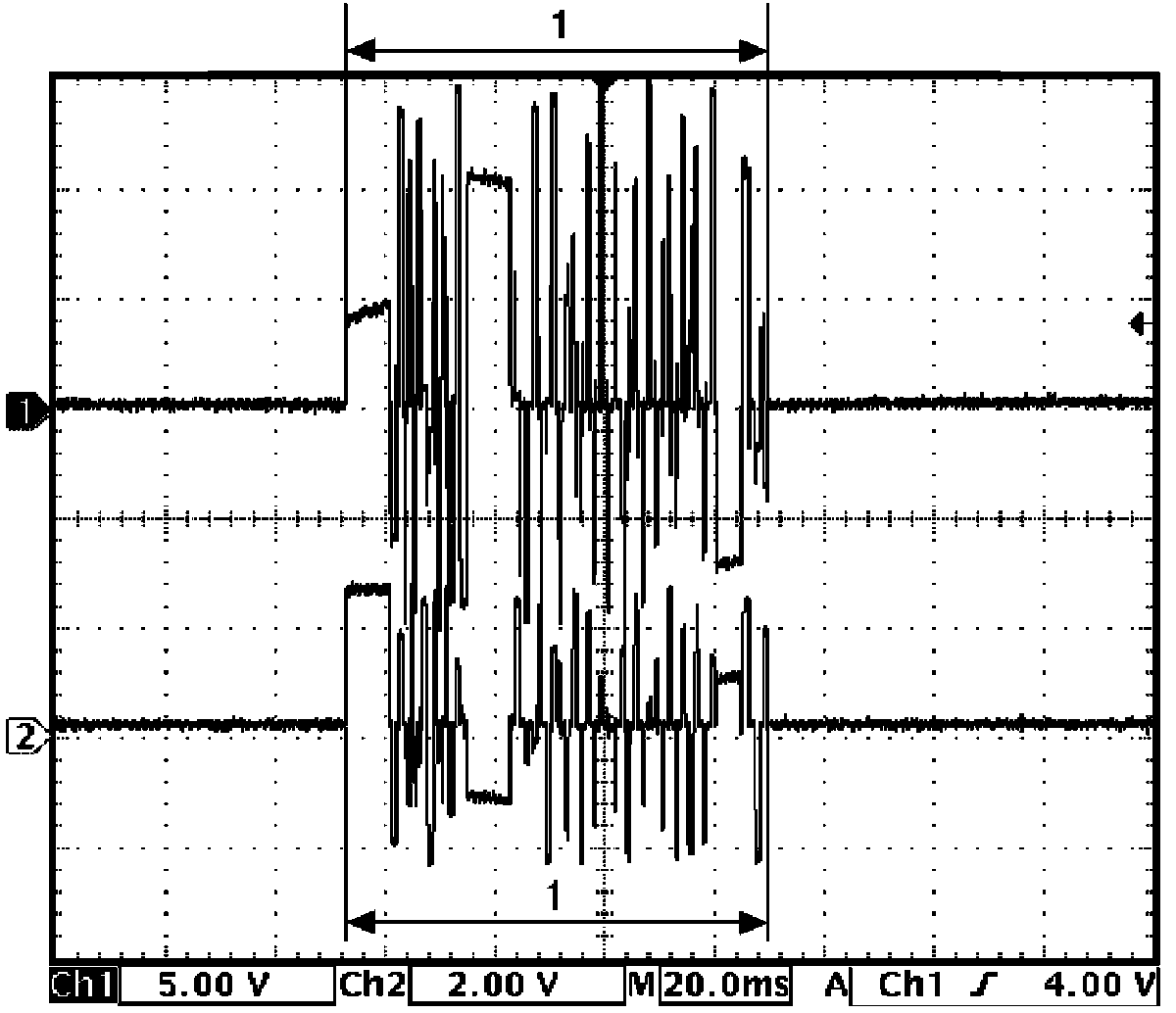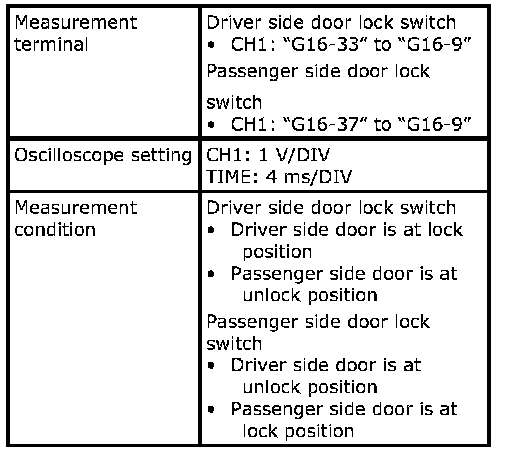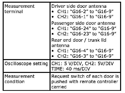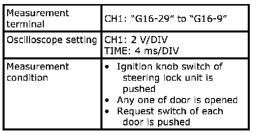 (Signal (1) communicated between keyless start control module and steering lock unit when measurement condition described below applies)