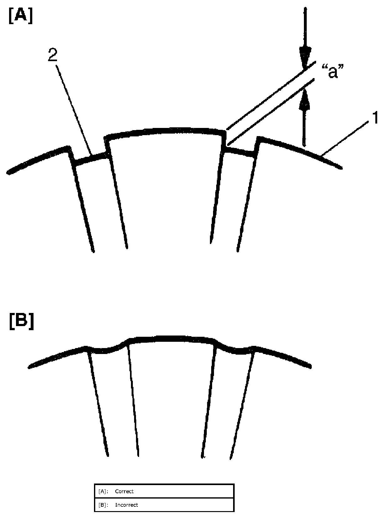 ^ Inspect the pinion for wear, damage or other abnormal conditions.